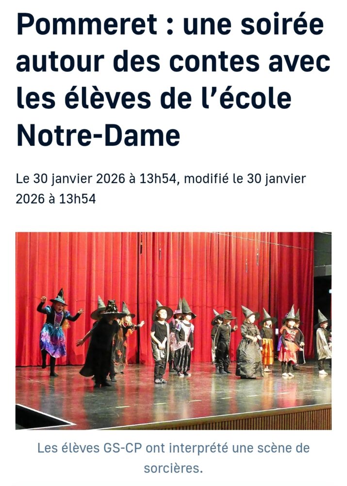 Depuis le mois d’octobre, tous les élèves et l’équipe pédagogique étaient mobilisés pour la préparation de ce spectacle : écriture, mise en voix et/ou en musique, mise en scène, costumes et décors… avec l’aide de Sandrine et Noëlle, intervenantes de Lamballe-Terre-et-Mer, notre projet a petit-à-petit pris forme, les costumes ont pris vie (merci à Pauline et Carine, des mamans aux doigts d’or), les enfants ont appris leur texte et surmonté leur peur pour aboutir ce 23 janvier à notre représentation finale devant vous… une sacrée aventure !!