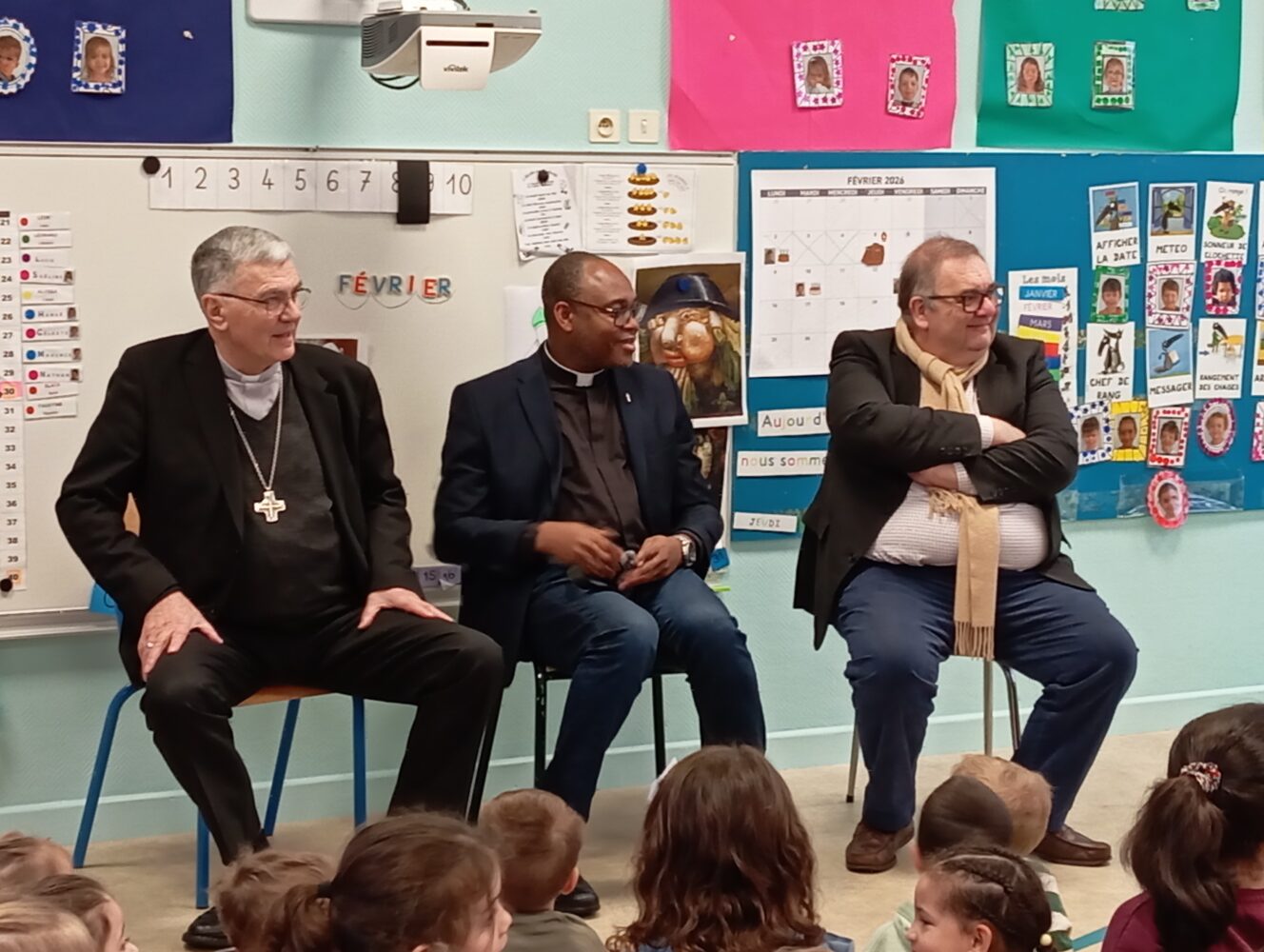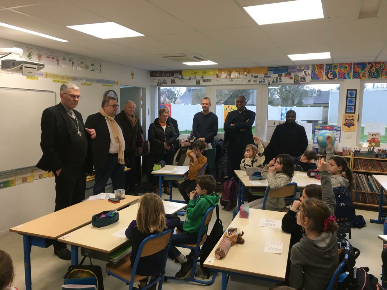 Notre école a été choisie par Monseigneur Denis Moutel, évêque de Saint Brieuc et de Tréguier et par le Père Cosme Houssou notre nouveau curé de paroisse, pour une visite.