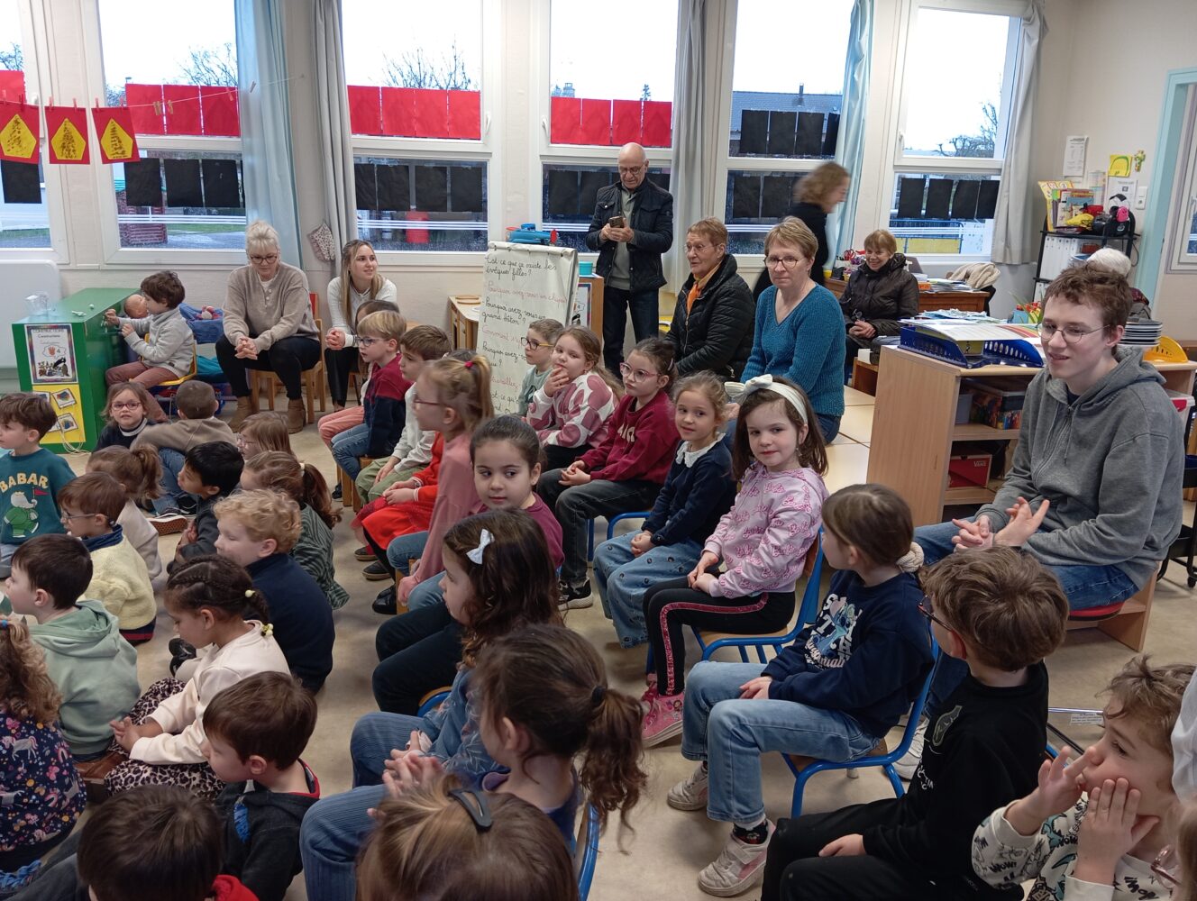 Nous les avons donc accueillis dans les classes, d’abord maternelle-CP puis CE-CM pour des temps d’échange et de questions préparées par les enfants.